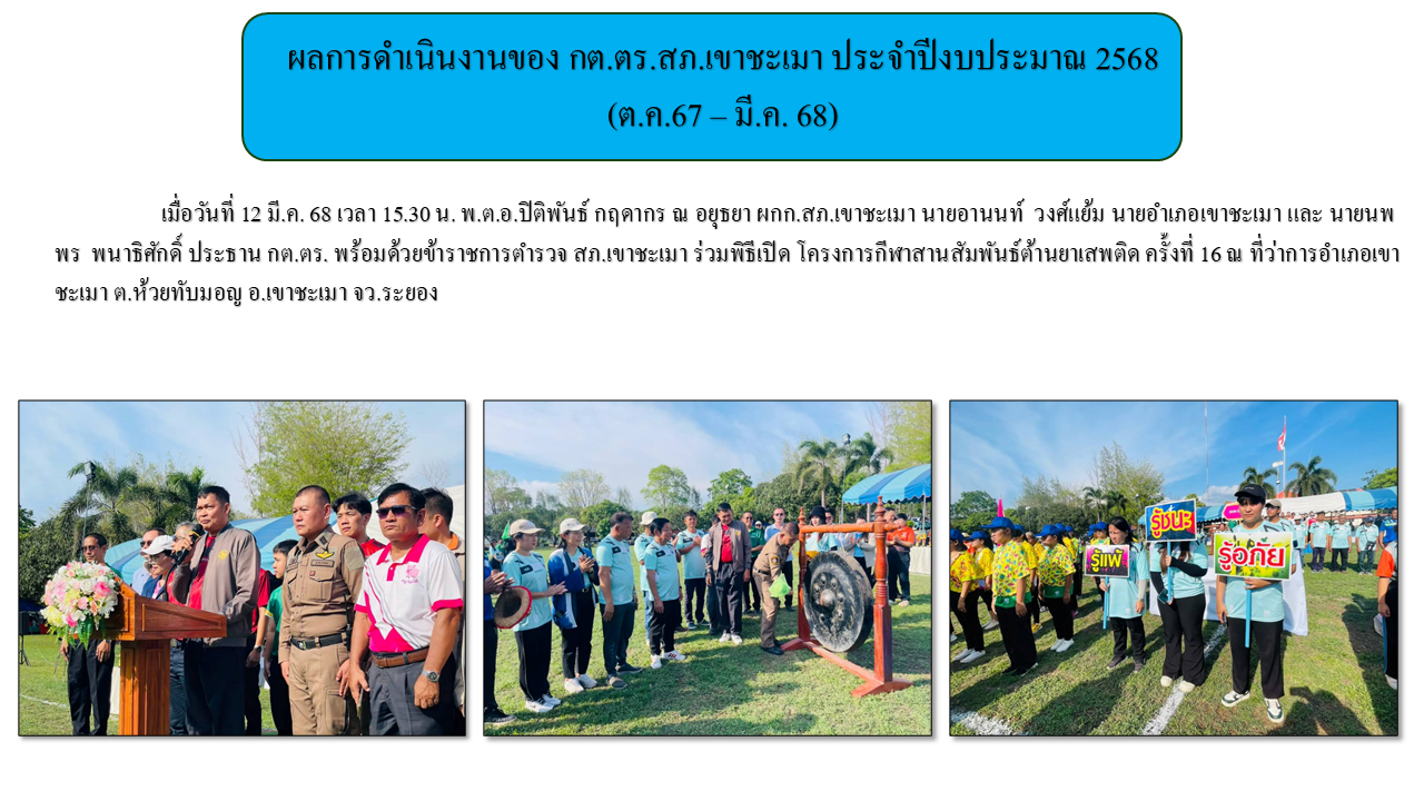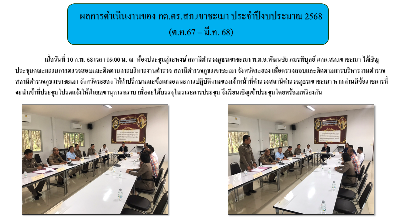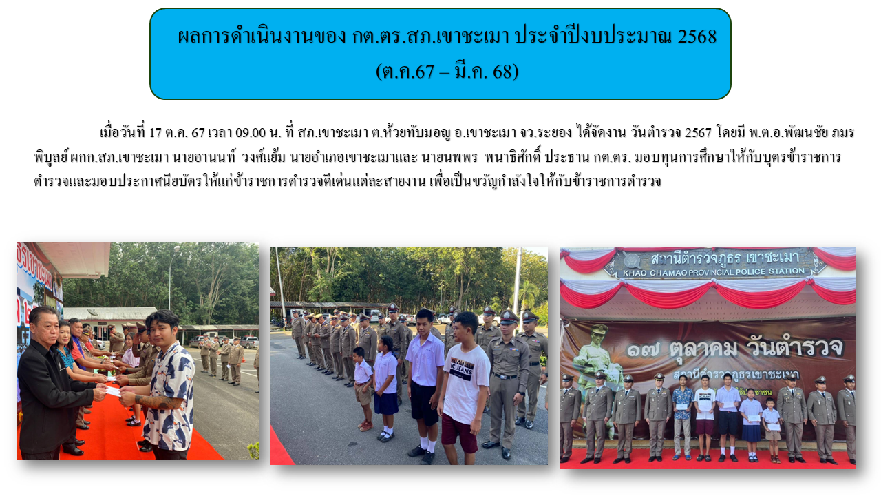 ผลการดำเนินงานของ กต.ตร.สภ.เขาชะเมา ประจำปีงบประมาณ 2567 (ต.ค.67 - มี.ค. 68)